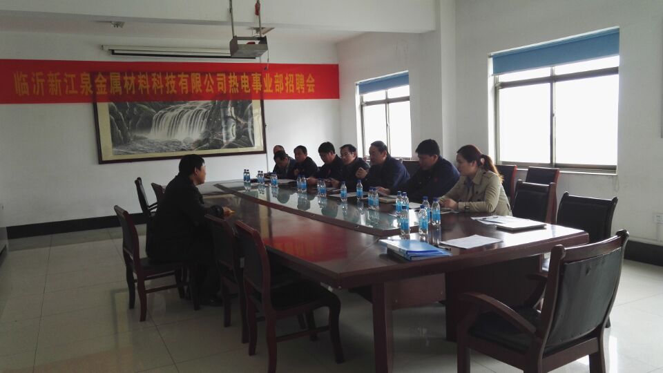 2016年3月15日臨沂新江泉金屬材料科技有限公司熱電事業(yè)部召開招聘會(huì),此次招聘會(huì)由熱電事業(yè)部主辦集團(tuán)人力資源部協(xié)助舉辦。